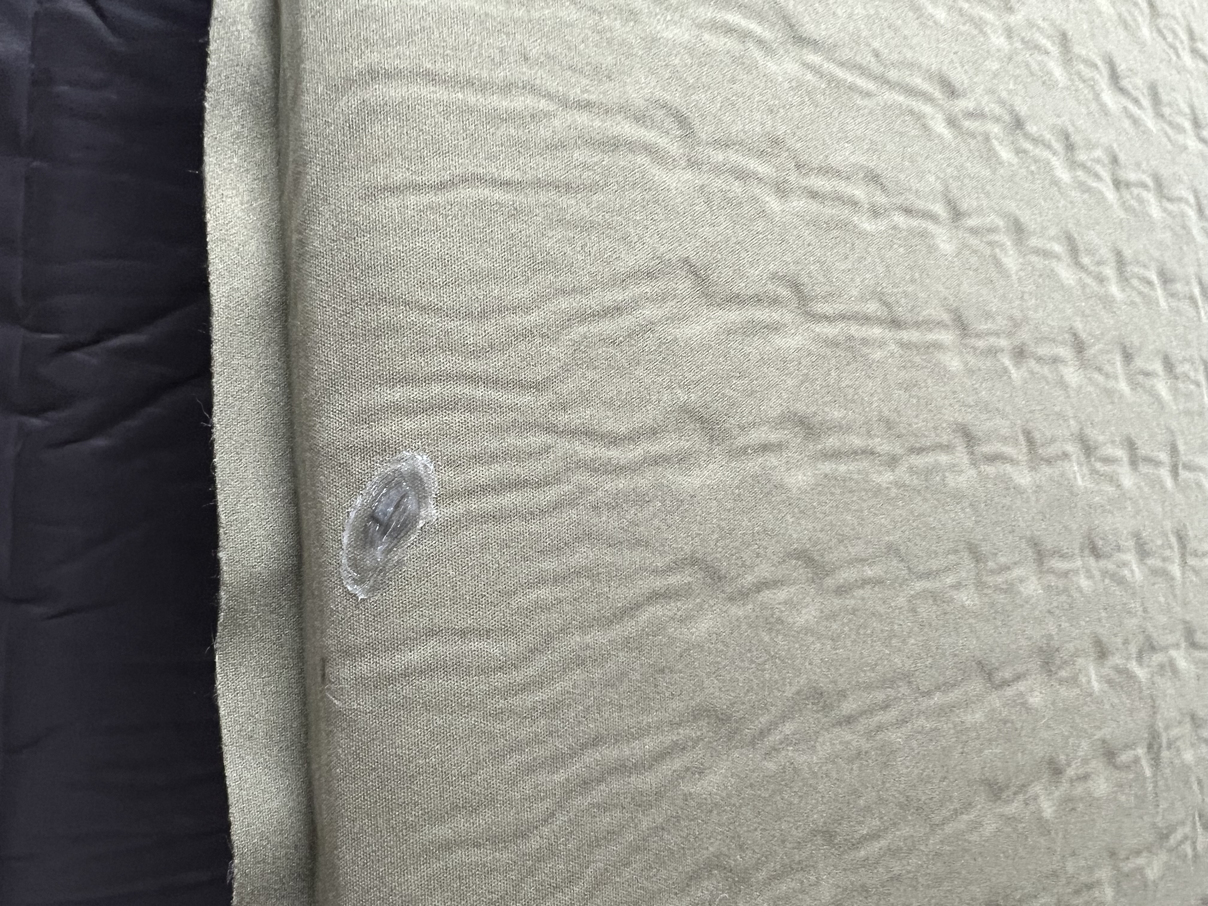 이로써 수리키트, 빵구키트, 수선키트 없이 자충매트 바람샘 문제를 해결했다. 아래의 사진은 본드를 바르고 10시간 가량이 지났을때 사진이며, 이때 바람을 빵빵하게 채워넣고 3시간 가량 누워서 테스트해본 결과 바람이 더이상 빠지지 않았다.