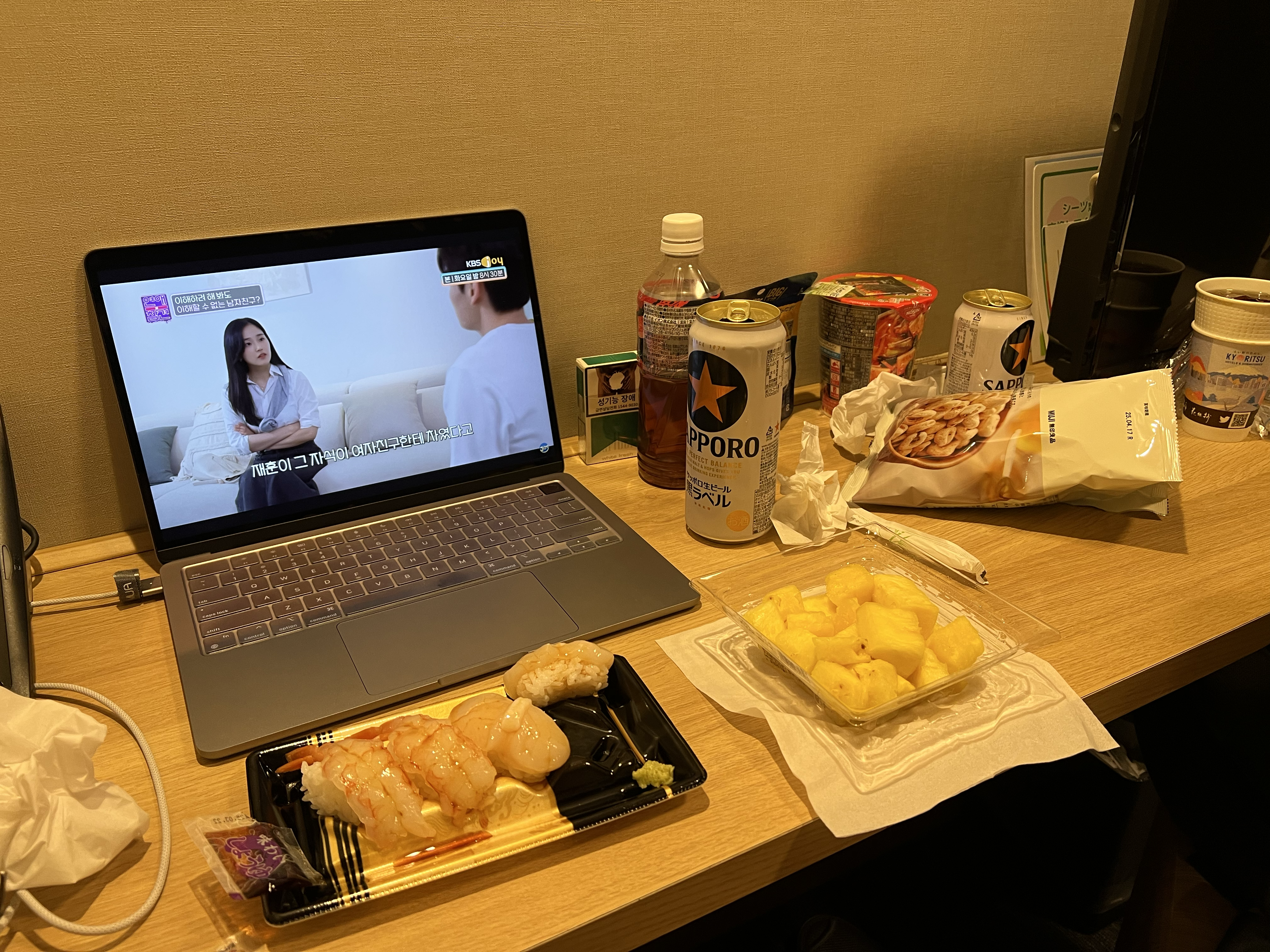 다만, 저 위치에 음식을 놓고 기존의 TV를 보기는 힘든 각도이기때문에, 나는 다음 일본여행에 무조건 캠핑의자와 테이블을 챙겨갈것이다.