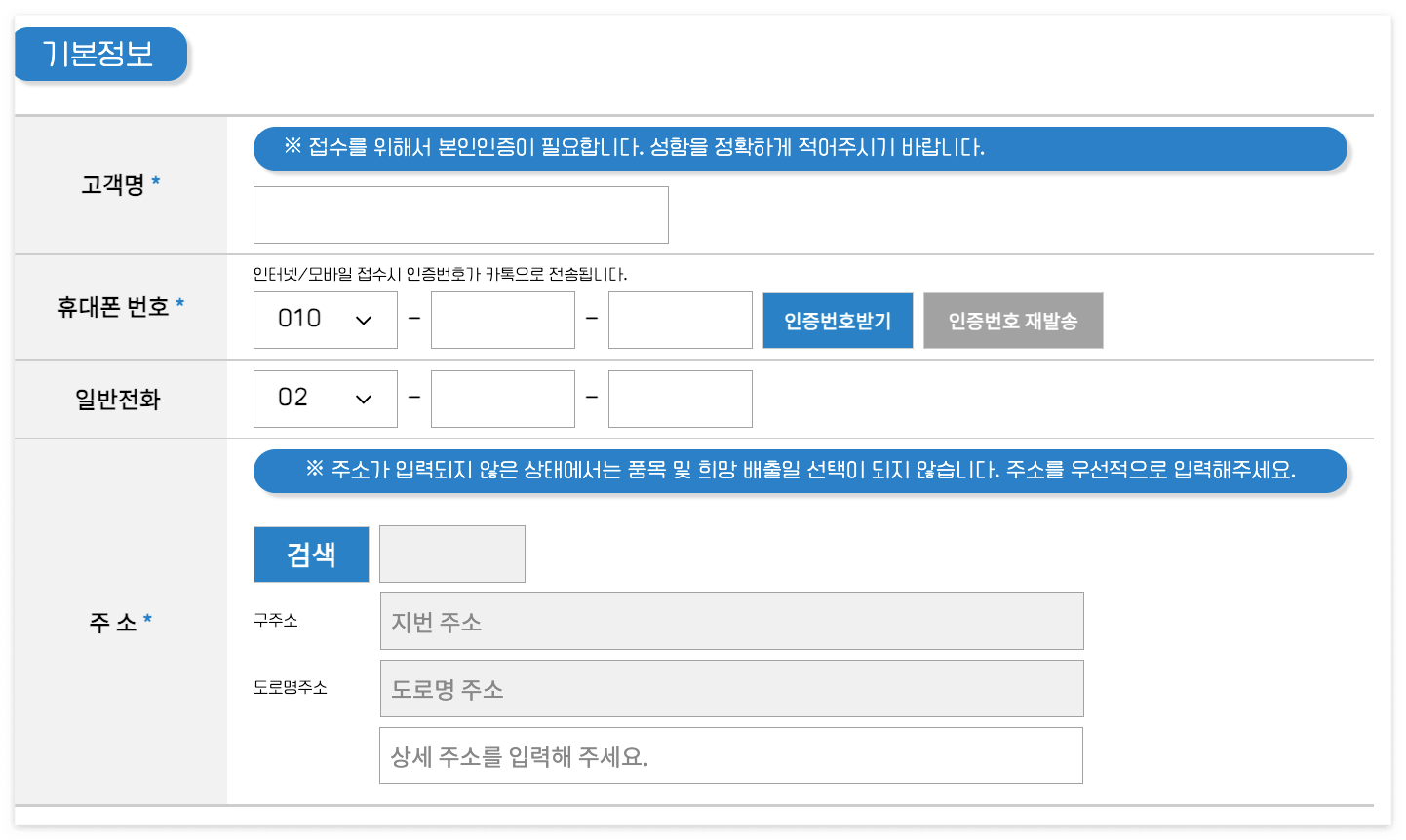 신청인의 기본정보를 입력한 후