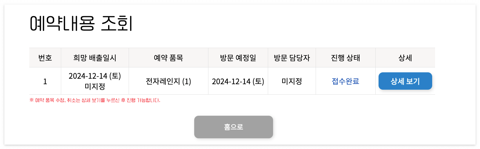 신청 후 방문 일정 변경이 필요하면 최소 1일 전에 홈페이지에서 수정하거나 고객센터로 문의하면됩니다.