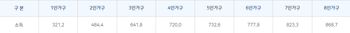 ※ 2022년 기준 전년도 가구당 도시근로자 월평균 소득 100% 기준 ( 단위 : 만원 )