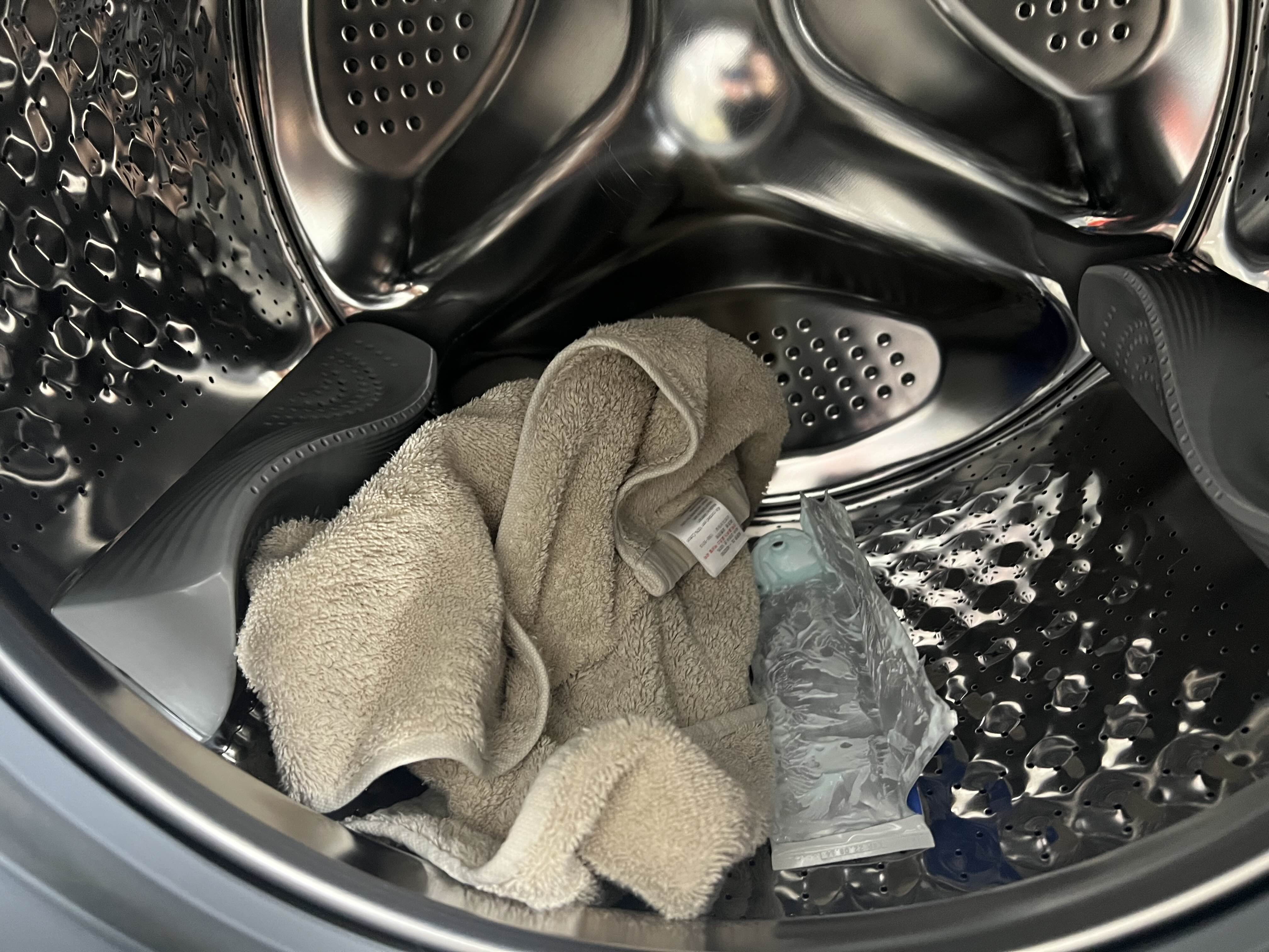 2. 세탁조에 치약과 수건 한 장을 함께 넣는다.